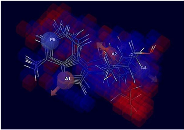 After observing 3D-QSAR model, the data suggested that the substitution at A1, A2, A4, and P9 are responsible for enhancing the activity against the Ebola virus.