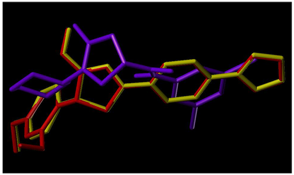Sybyl package was used to draw 3D structures (Tripos Associates, St. Louis, MO, USA) [30]. Tripose force field was used for geometric optimization [31] using a distance dependent-dielectric function, energy gradient of 0.001 kcal/mol and MMFF94 as the electrostatics. Repeated molecular dynamics-based simulated annealing approach was implemented for the conformational analyses of all the 15 compounds. Molecules were heated up to 1000 K within 2000 fs, held at this temperature for 2000 fs and annealed to 0 K for 10,000 fs using an exponential annealing function. By employing this procedure, 100 conformations were sampled out during the 100 cycles to account for conformational flexibility to find the most likely stable conformations. All the conformations were minimized with Tripos force field and atomic charges were calculated using MMFF94 (Merck Molecular Force Field) method.