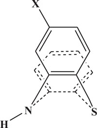 The pharmaceutical/biological activities range of benzothiazines (4H-1,4-benzothiazines) has been recognized by the structural flexibility because of folding along N-S axis. The folding angle is affected to a larger degree by the arrangement of the substituents and nature. The basic features present in benzothiazines (4H-1,4-benzothiazines) hetero system are similar to that existing in 10H-phenothiazine, which marked them industrially as well as therapeutically interesting [23-48] (Figs. 10 and 11).