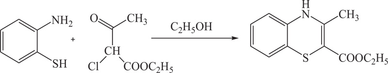 T. Yamada et al. have reported a convenient way for the synthesis of benzothiazines(4H-1,4-benzothiazines) by the reaction of 2-amino-benzenethiols(3.8g) with ethyl 2-chloroacetoacetate (5.0g) with refluxing in ethanol for 30 minutes and cooling. Reaction products were further added to water (120ml) (Scheme 1). The collected precipitate was crystallized in methanol with 52% yield. [49, 50].