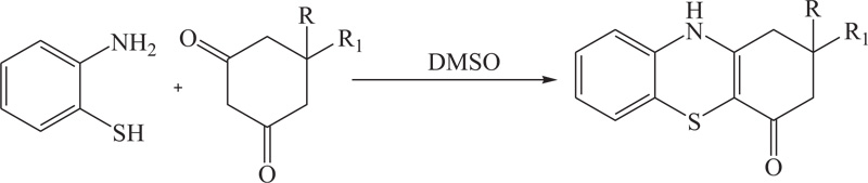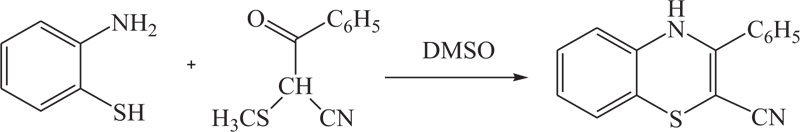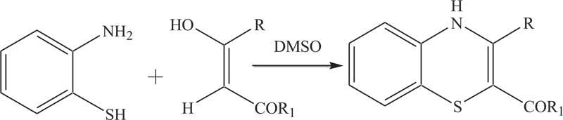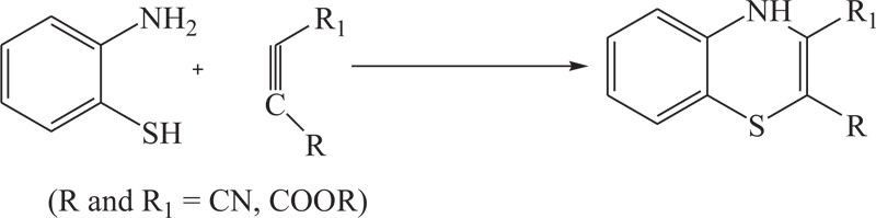 To overcome the problems of low yield, excess use of hazardous solvents, and more use of energy in previous methods, different groups of renowned researchers including R.R. Gupta et al., S. Kano et al., G. Liso et al., further extended above approach which was used for the synthesis of substituted benzothiazine, especially 4H-1,4-benothiazines, by the reaction of 2-aminobenzenthiol and their derivatives with different reactants, such as cyclohexan-1,3-dione, cyno-thiomethylacetophenone, acetylenic nitriles, and esters, in the presence of most suitable agent DMSO [51-53] (Schemes 2-4).