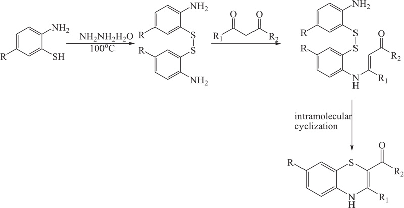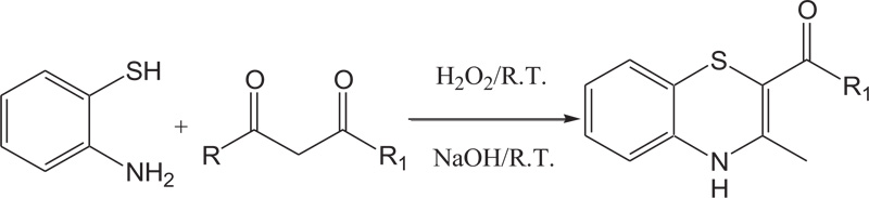 (c) The reaction of 2-aminobenzenthiols with β-diketones in the presence of H2O2/NaOH/H2O has also been reported for the preparation of 1,4-benzothiazines (Schemes 9).