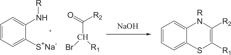 In the same way, to increase the yield of product and reduce organic synthesis problem observed during the synthesis of most valuable nitrogen sulphur containing heterocycles, such as benzothiazines, A.Y. Chenko et al. and H. Nagase et al. used different approaches in which benzothiazines (4H-1,4-benzothiazines) have been prepared by the reaction of 2-aminobenzenethiol/sodium salt of N-substituted 2-aminobenzenethiols with bromoketones/phenacyl bromide [54,55] (Schemes 5-6).