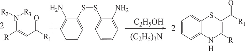 (a) The reaction of S-S dimer of 2-aminobenzenethiol with enaminones and esters in the presence of triethylamine provides 1,4-benzothiazines. In this reaction, nucleophilic addition of enaminones to disulphide of 2-aminobenzenethiol is followed by cyclization by Michael type addition of NH2 group to C=C bond to provide 1,4-benzothiazines (Schemes 7).