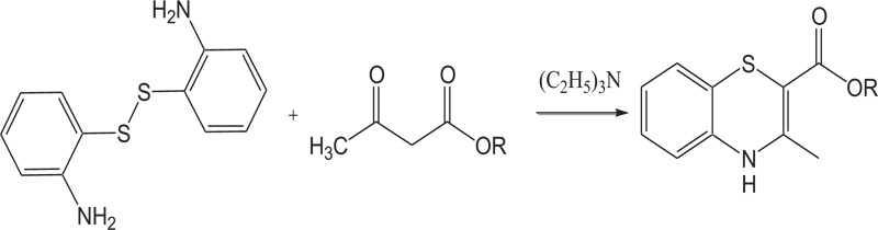 (b) Benzothiazines(4H-1,4- benzothiazines) have also been prepared by the reaction of alkylacetoacetates with disulphides in the presence of catalytic amounts of triethylamine (Schemes 8).