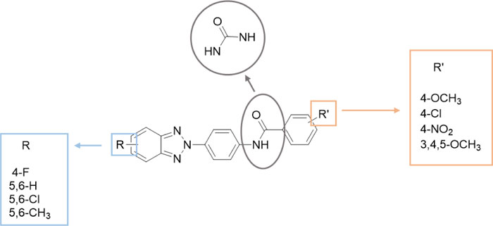 In this article, we conclude the exploration of N-(4-(R-2H-benzo[d][1,2,3]triazol-2-yl)phenyl)-4-R’-benzamides and 1-(4-(R-2H-benzo[d][1,2,3]triazol-2-yl)phenyl)-3-R’-ureas by synthesizing further modified derivatives, in order to have more elements for SARs evaluation.