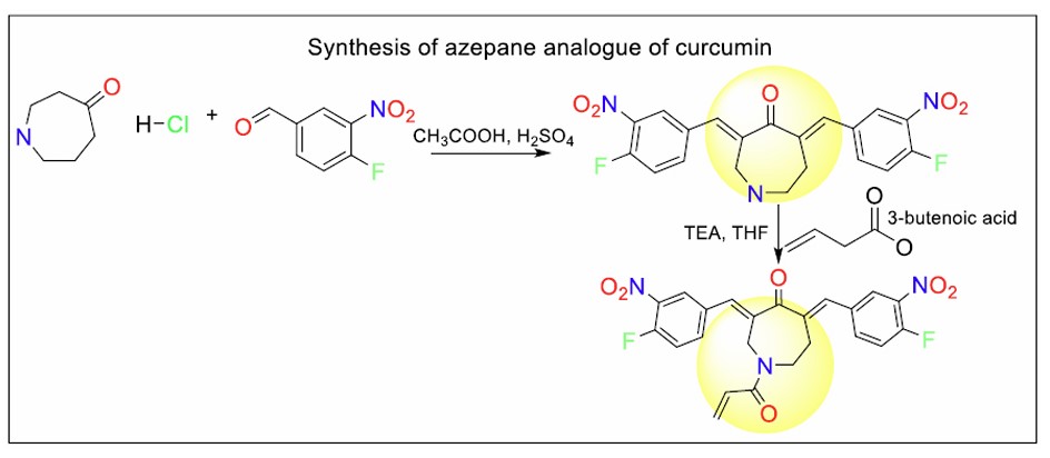 Scheme for the synthesis of the azepane analogue of curcumin.