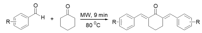 Synthesis of benzylidene-cyclohexanone analogues by microwave irradiation.